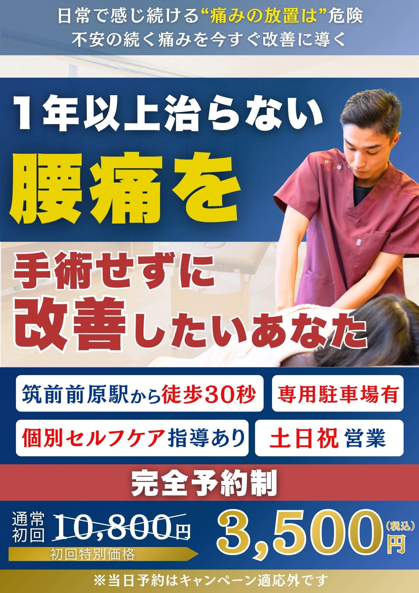 流れ作業ではない、一人ひとりに向き合う整体を求める方は、ぜひこの機会をご活用ください。